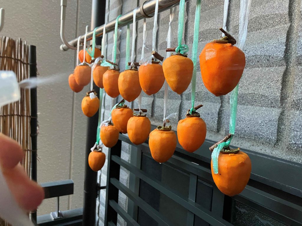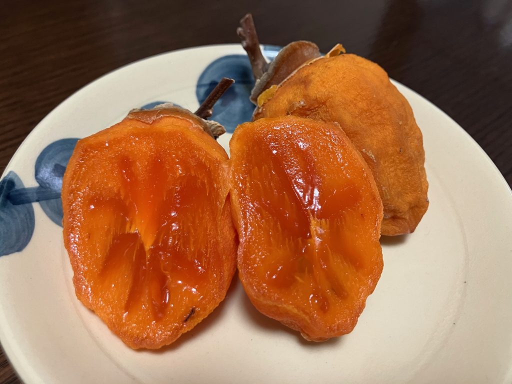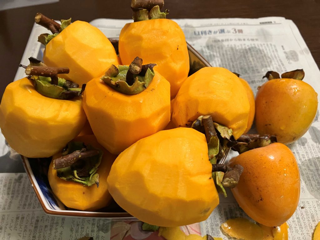 そして、少なかった降雨量は楽しみにしていた黒枝豆を大不作に追い込みました。ところが雨が少なく日照時間が長くなると、果物は糖度を増します。おかげで今年の柿は甘いうえに大豊作。弊社の顧問が送ってくれた自家栽培の渋柿を手に取ると、ズシリと重い。さっそく皮をむいて熱湯と焼酎で消毒し、風通しのいいベランダに干すと2週間で干し柿のできあがり。