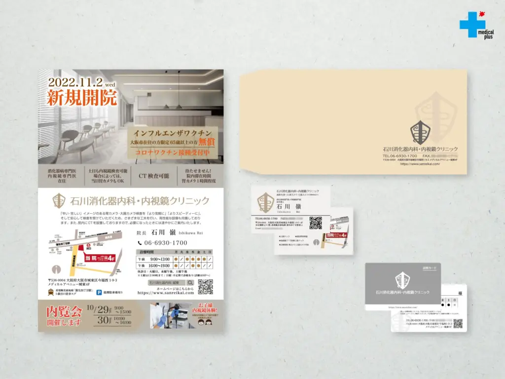 駅広告 内照式/A4チラシ、名刺、封筒、診察券、ゴム印